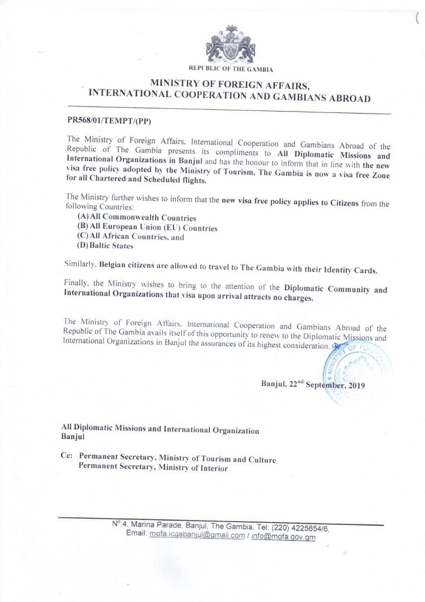 Depuis 2019, la Gambie a simplifié sa politique de visa d’entrée en accordant un visa gratuit à l’arrivée aux citoyens européens. Les touristes français se voient actuellement accorder un visa de 15 jours, renouvelables sur place.